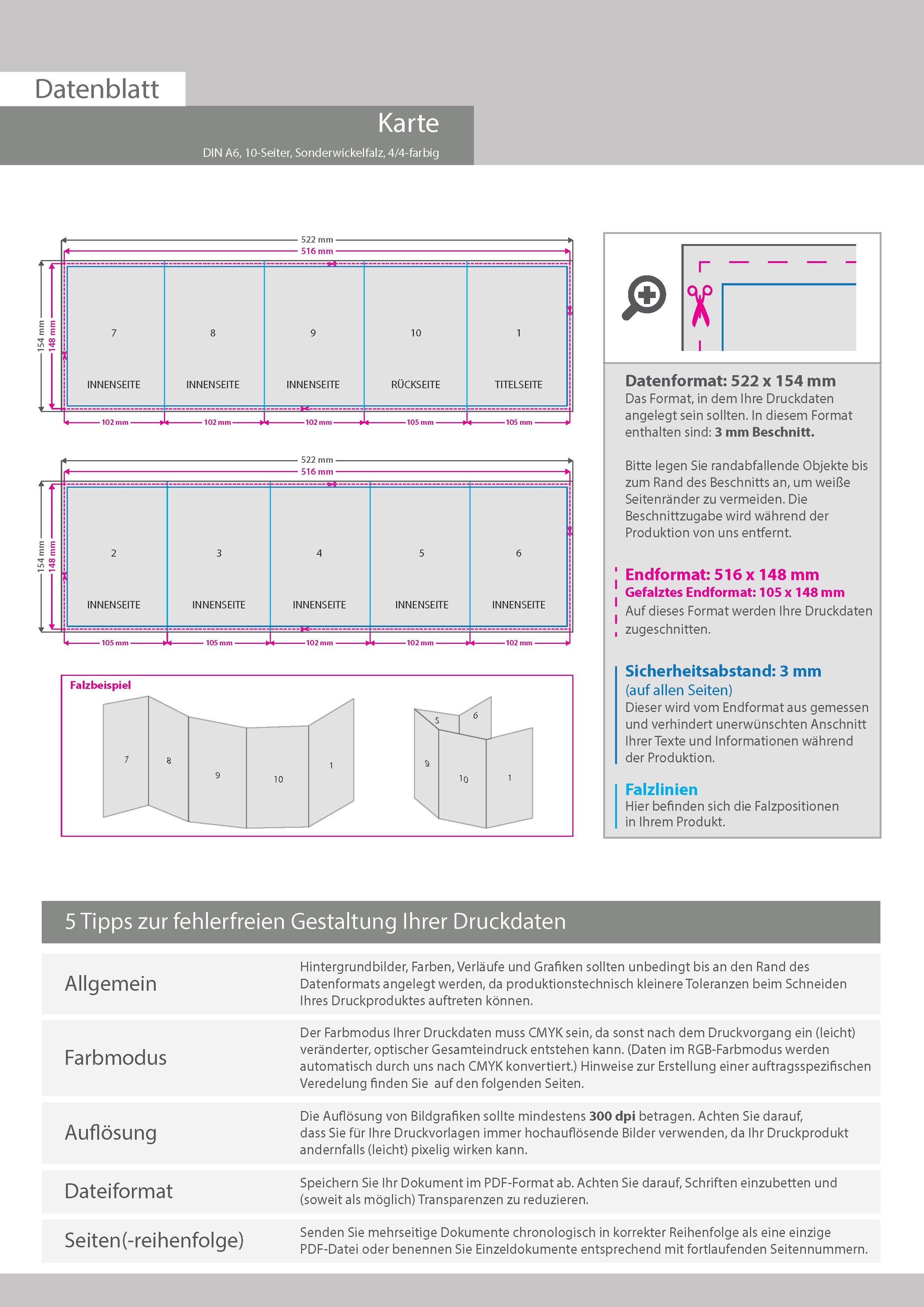 Hochzeitskarte, gefalzt auf DIN A6, vertikaler Sonderwickelfalz, 10-seitig