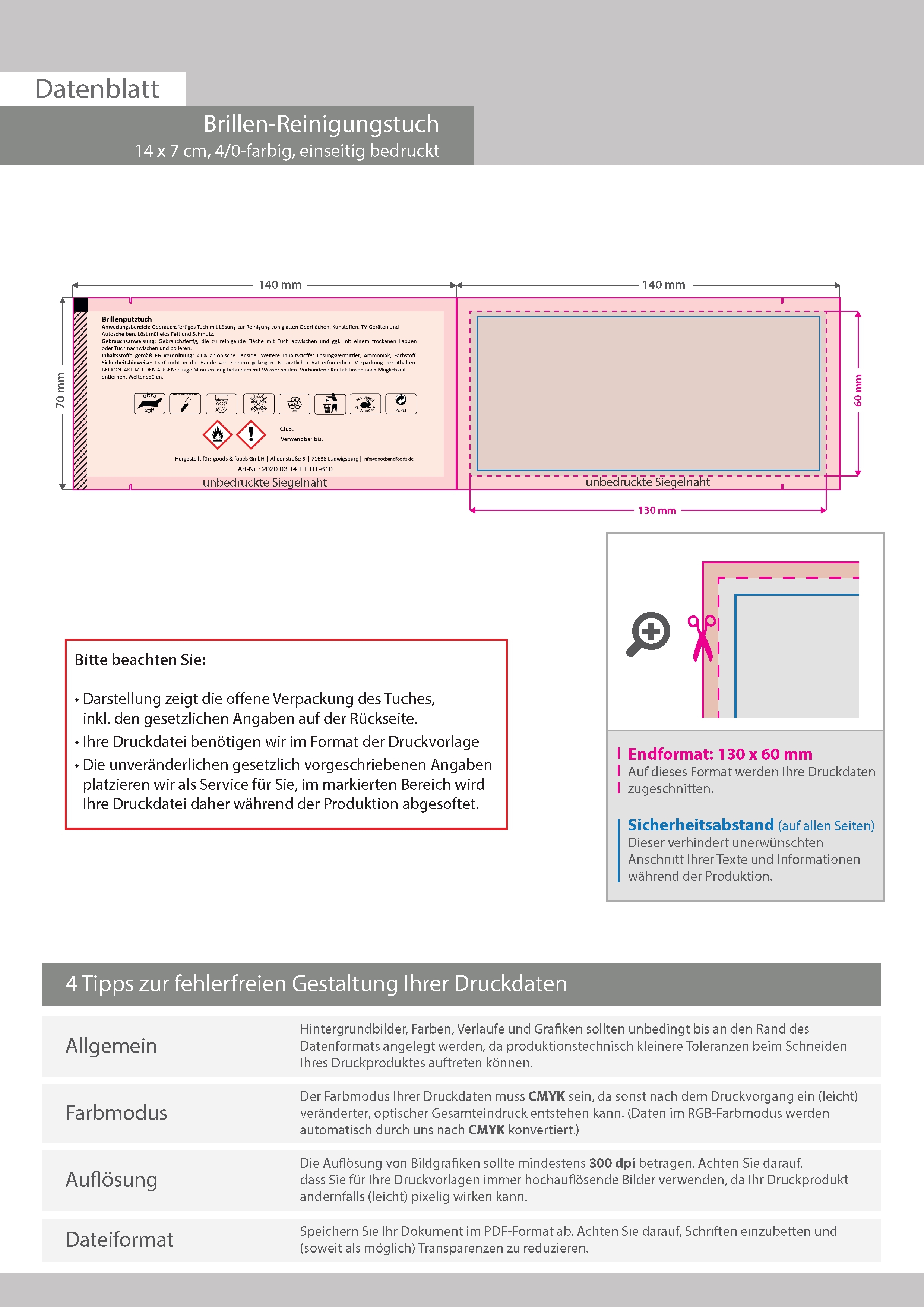 Feuchtes Brillen-Reinigungstuch, 14 x 7 cm, 4/0-farbig einseitig bedruckt